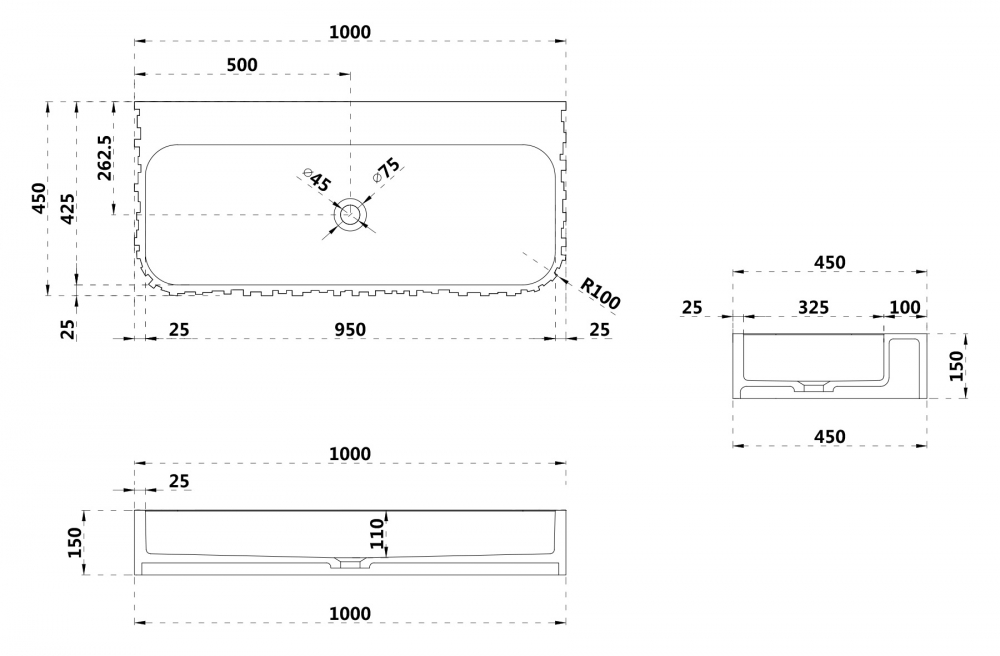 Раковина подвесная Abber Stein 1000x450 белый матовый (AS2652-1.0)