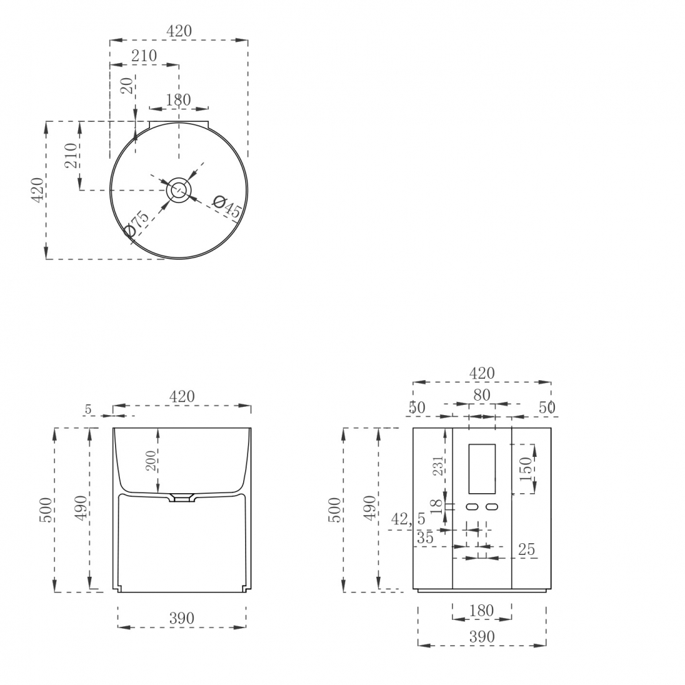 Раковина подвесная Abber Stein 420x420 белый матовый (AS2624)