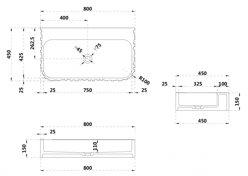 Раковина подвесная Abber Stein 800x450 белый матовый (AS2652-0.8)