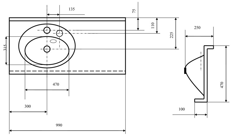 Раковина подвесная Акватон Отель 3/1000 990х470х250 L (1A70073NOT01L)