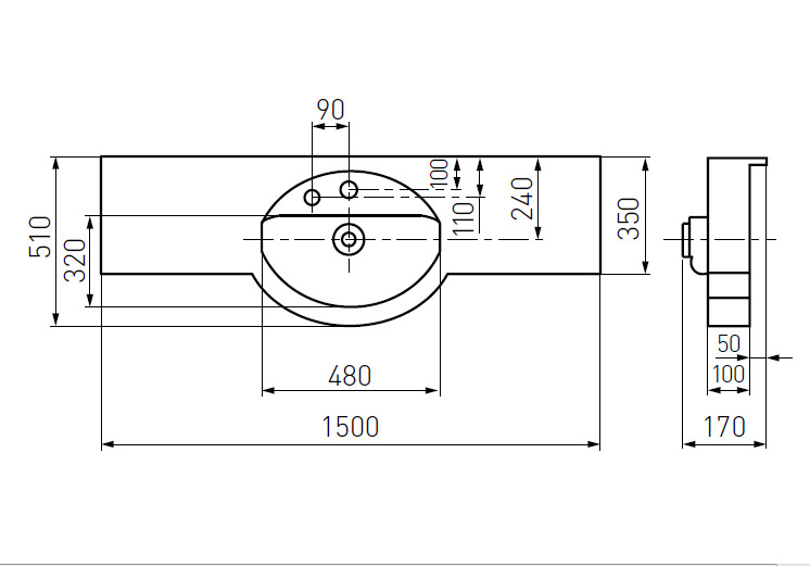 Раковина подвесная Акватон Отель 5/1500 1500х510х170 с навесами (1A70133NOT010)