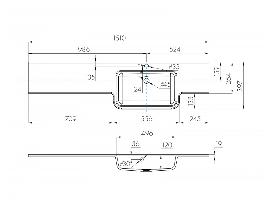 Раковина подвесная Aquaton Hotel 151x40,5x16,5 R белый (1.A709.5.31P.I01.P)