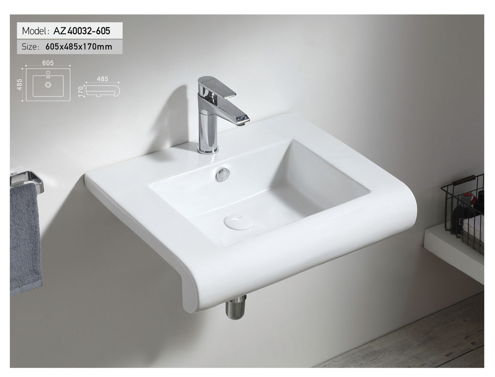 Раковина подвесная Azario Loretti 60,5x17x48,5 белая (AZ-40032-605)