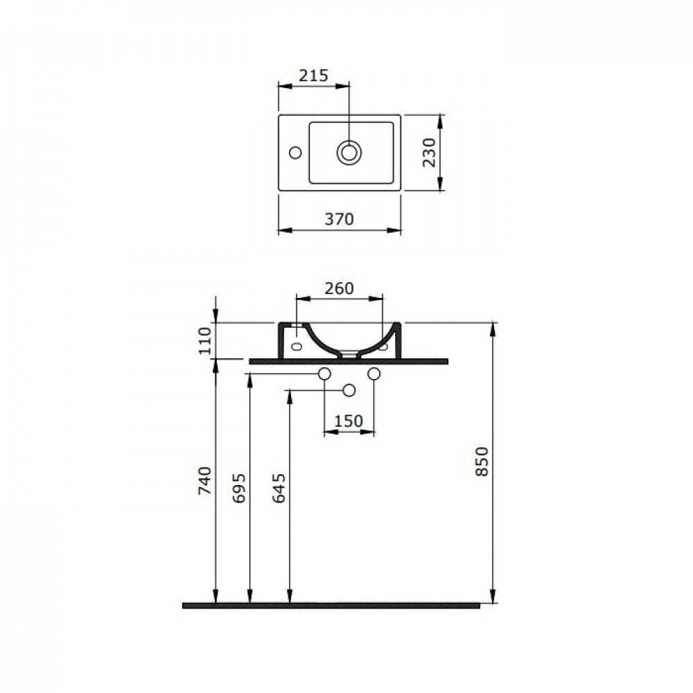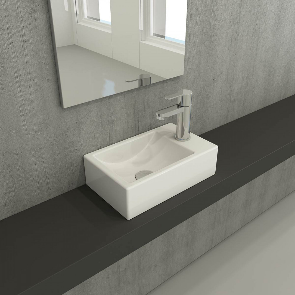Подвесная раковина из санфарфора Berges Small размером 37х23х11 см. Прямоугольной формы, с отверстием под смеситель, глянцевая белая. Крепеж в комплекте.