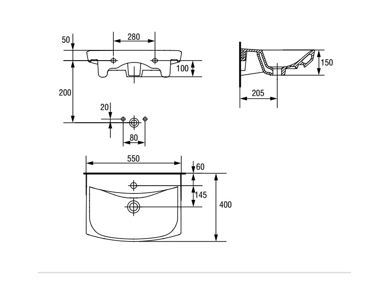 Раковина подвесная Cersanit Carina 55 550х400х150 (S-UM-CAR55/1-w)
