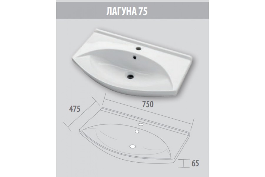 Раковина подвесная Dreja Лагуна 75 750x430x65 (028230) (приобретается только в комплекте с тумбой Dreja)