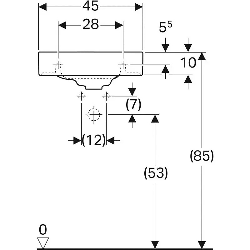 Раковина подвесная Geberit Citterio 45х30 с отверстием под смеситель справа, без перелива, KeraTect, белая (500.541.01.1)