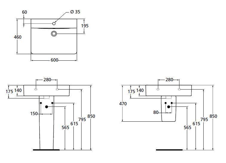 Дополнительная комплектация: Пьедестал Ideal Standart Connect 720x190x195 (E797301), Полупьедестал Ideal Standart Connect 340x280x195 (E797401), Тумба подвесная Ideal Standard Connect Cube 550x420x528 (C1835WG) приобретаются отдельно.