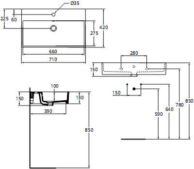 Центральное отверстие под смеситель