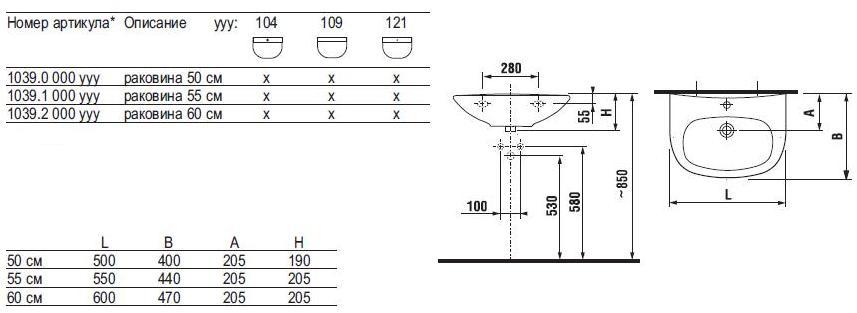 Раковина подвесная Jika Zeta 550х440х205 (8103910001049)