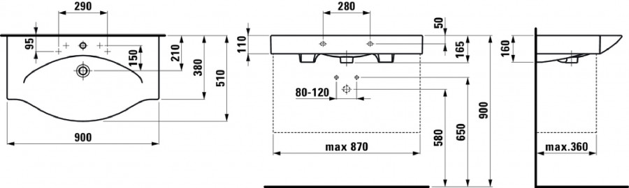 Раковина подвесная Laufen Palace 90х51х11 белая (8.1170.2.000.104.R)