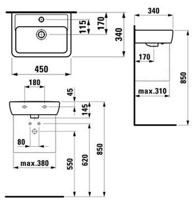 Раковина подвесная Laufen Pro 450х340х150 (8.1195.1.000.104.1)