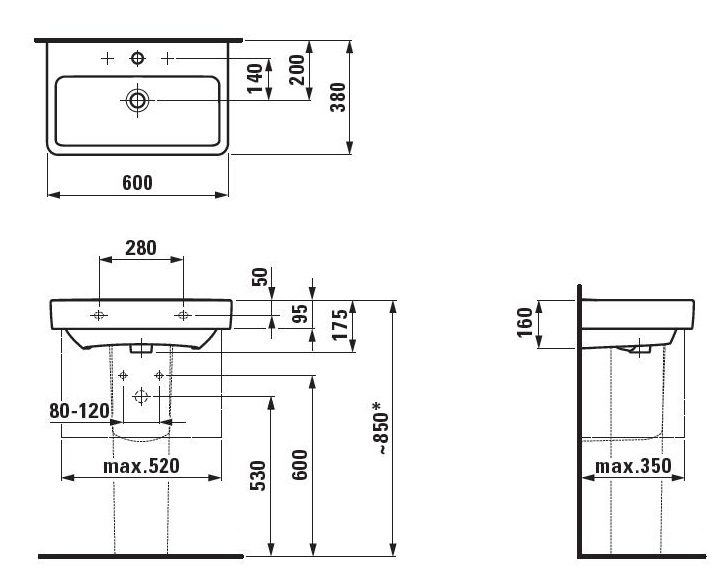 Раковина подвесная Laufen Pro 600х380х175 (8.1895.9.000.104.1)