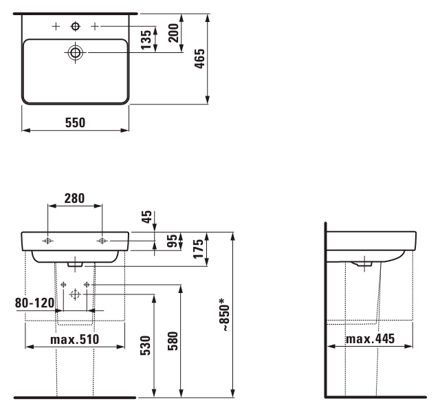 Раковина подвесная Laufen Pro S 550х465х175 (8.1096.2.000.104.1)