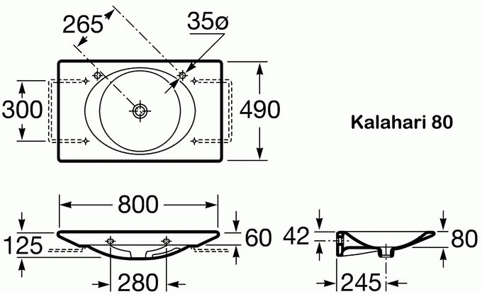 Раковина подвесная Roca Kalahari 800х490х125 (327878000)