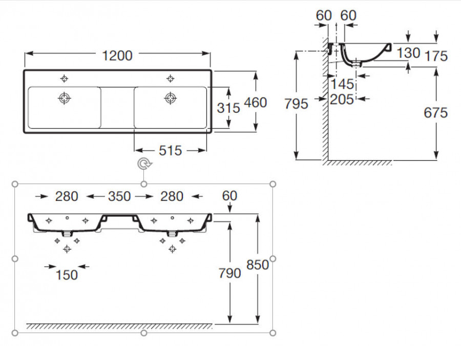 Раковина подвесная Roca The Gap 120x46x17,5 белая (A3270YS000)