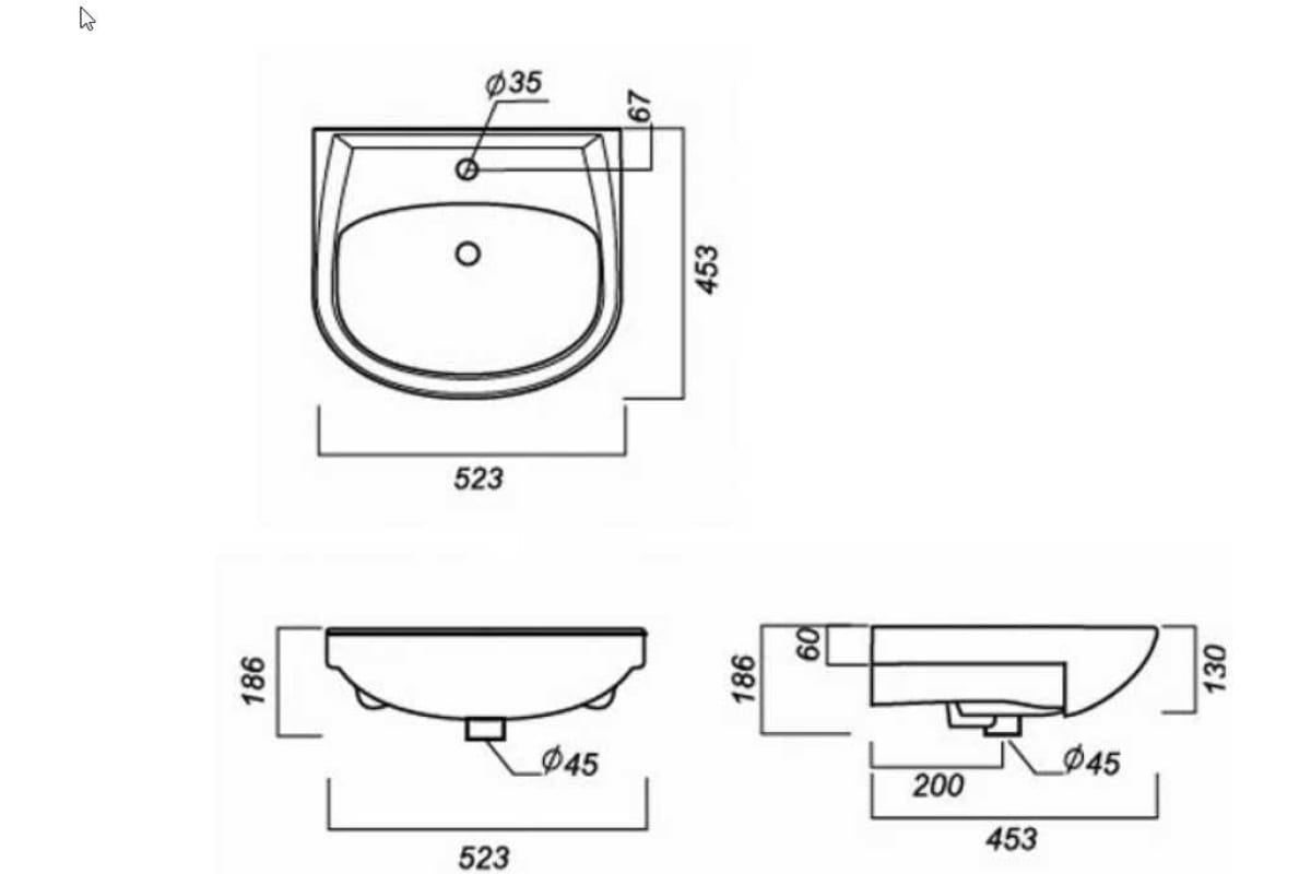 Раковина подвесная Sanita Аттика 50 523x453x186 хромированное обрамление (T50SAWB01)