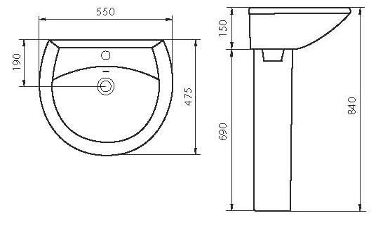 Раковина подвесная Sanita Аттика 55 550х475х150