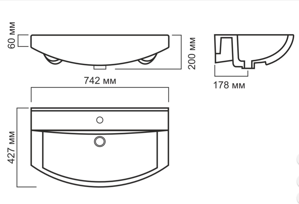Расположение отверстия под смеситель: по центру.