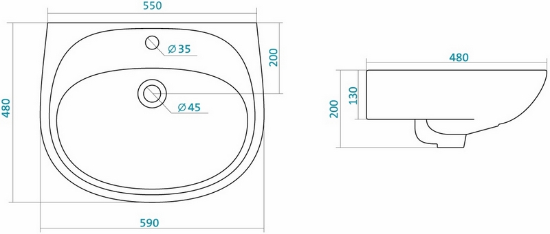Раковина подвесная Santek Анимо-60 480х590х200 (1WH110508)