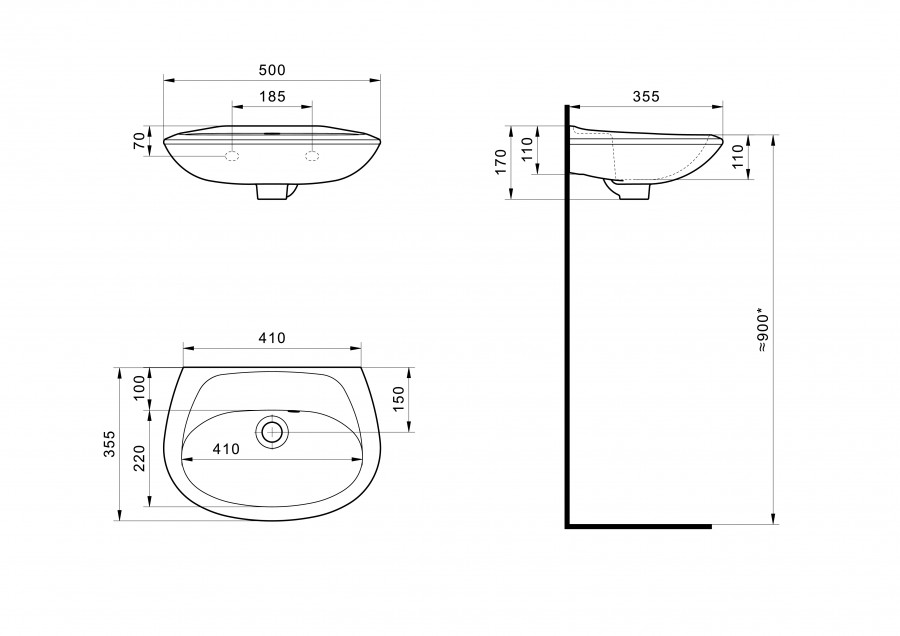 Раковина подвесная Santek Бриз 500x355x169 белая (1WH110448)