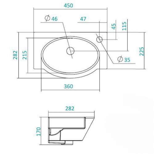 Раковина подвесная Santek Форум-45 280х455х170 R (1WH110545)