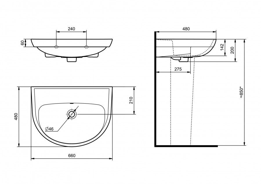 Раковина подвесная Santeri Прайм 66x48x20 белая (1.3117.6.S00.01B.0)