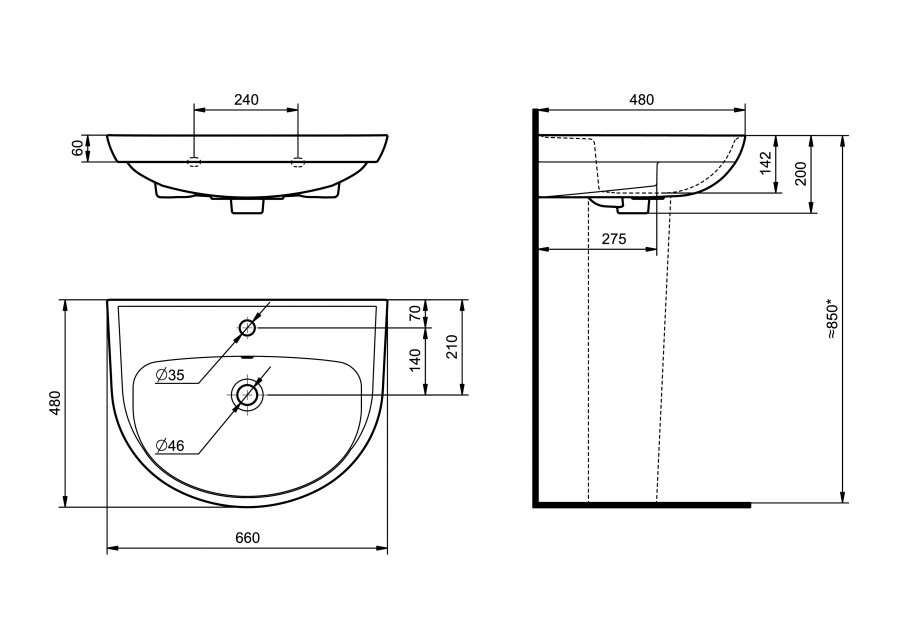 Раковина подвесная Santeri Прайм 66x48x20 белая (1.3117.6.S00.11B.0)