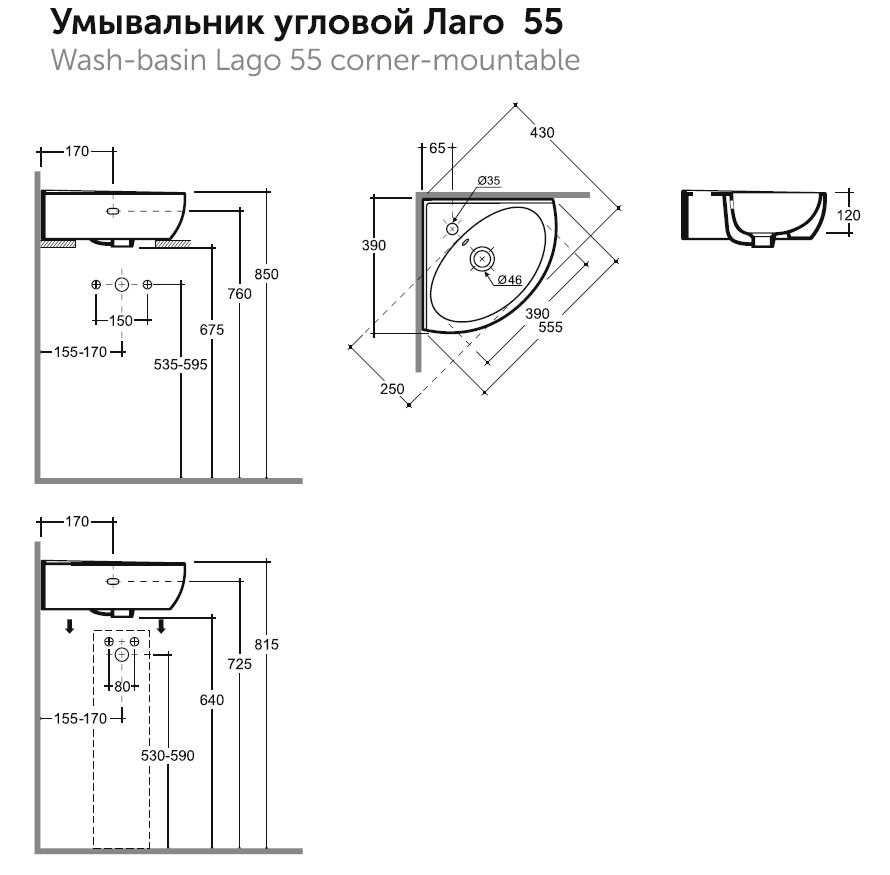 Раковина подвесная угловая Керамин Лаго 55 55,5х43х12 подвесная крепление в комплекте белая (CS00087558)