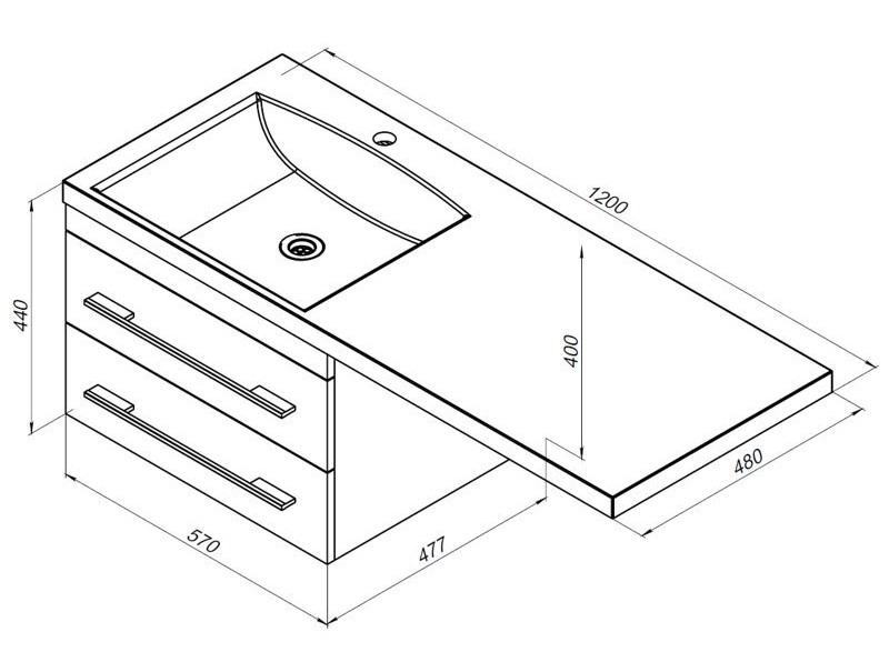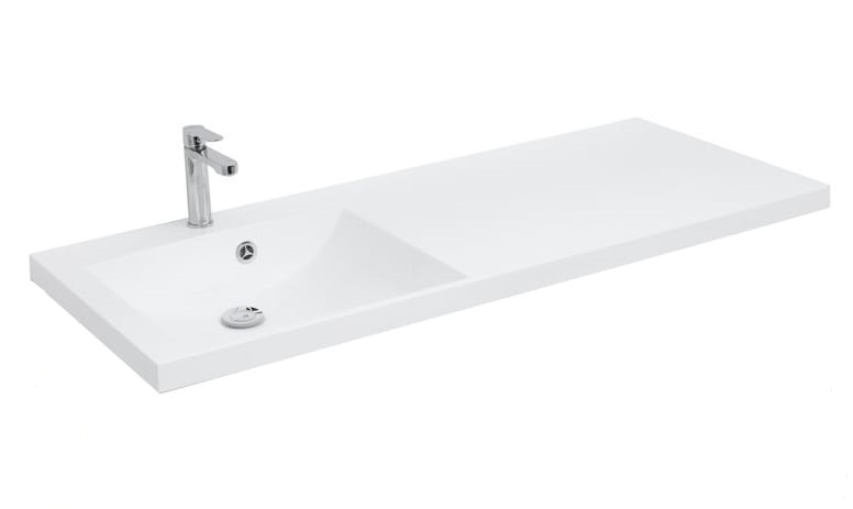 - Раковина столешница «Нота» длиной 120 см с выносной платформой, установленной с правой стороны от раковины, позволит разместить стиральную машину.