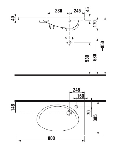 Раковина-столешница подвесная Jika Tigo 800х385х170 (8.1221.8.000.106.1)