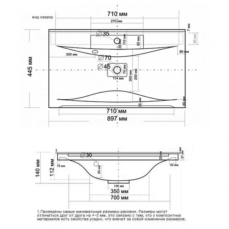 Раковина встраиваемая 1Marka Elen 90 белая (У25570)