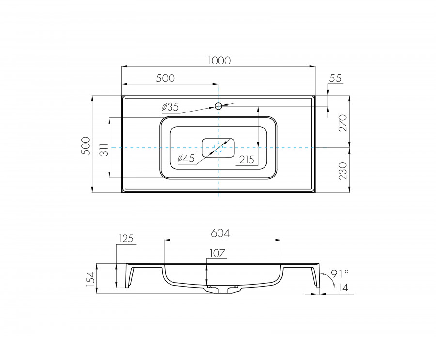 Раковина встраиваемая Aquaton Ричмонд 100x50x14 белый (1.A706.0.3KR.D01.0)