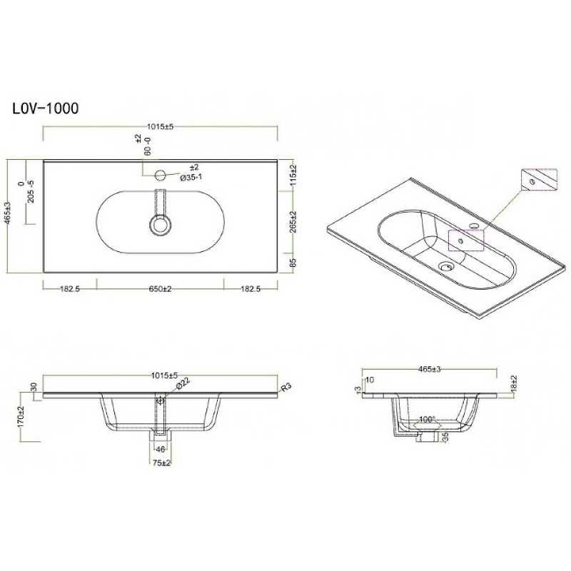 Раковина встраиваемая BelBagno 101,5 белая (LOV-1000-LVB)