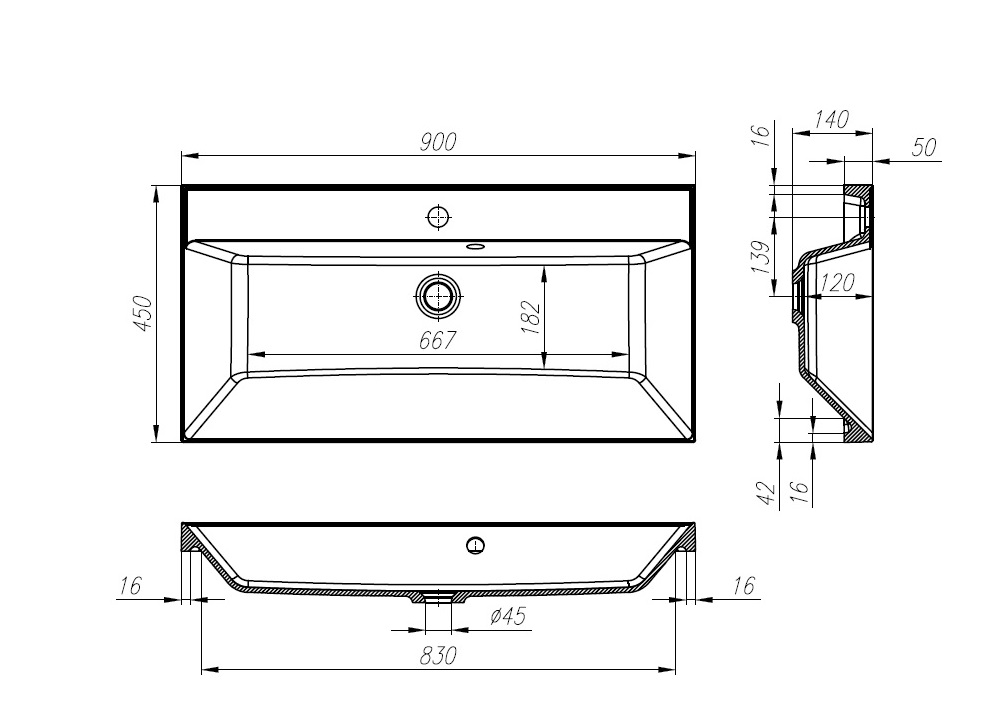 Раковина встраиваемая BelBagno 90 черная (BB900/450-LV-ART-AST-NERO)