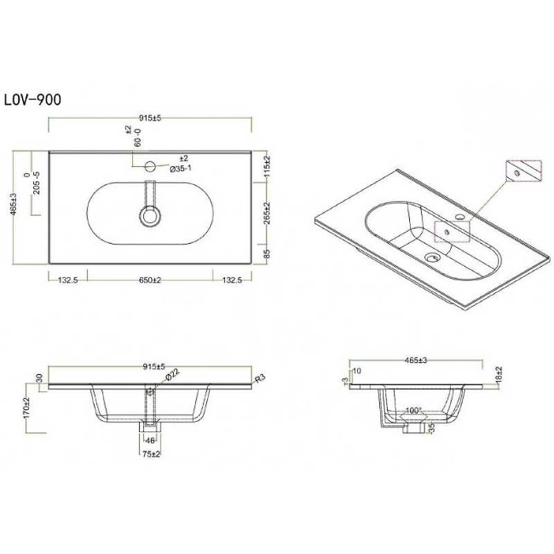 Раковина встраиваемая BelBagno 91,5 белая (LOV-900-LVB)