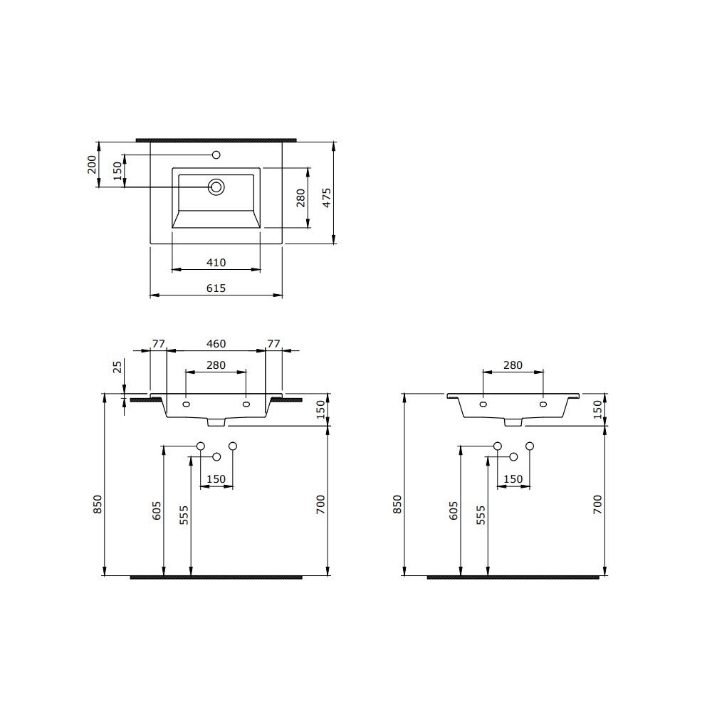 Подвесная/встраиваемая раковина из санфарфора Berges Ego размером 61х47,5х10 см. Прямоугольной формы с широкими бортиками, с отверстием под смеситель, глянцевая белая. Встроенный слив-перелив оформлен декоративной накладкой в цвете хром. Крепеж в комплекте.