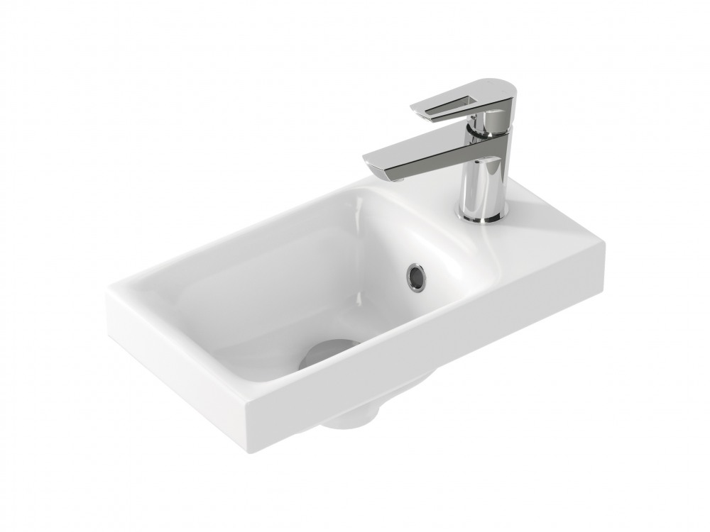 Прямоугольная мебельная раковина MODUO, размером 40 см. Имеет отверстие под смеситель, а также отверстие перелива. Установка возможна только на тумбу.