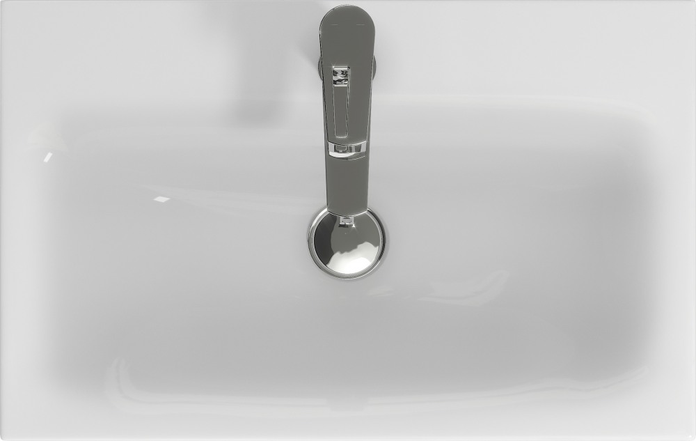 Прямоугольная мебельная раковина MODUO SLIM с узким профилем, размером 60 см. Имеет отверстие под смеситель, а также отверстие перелива.