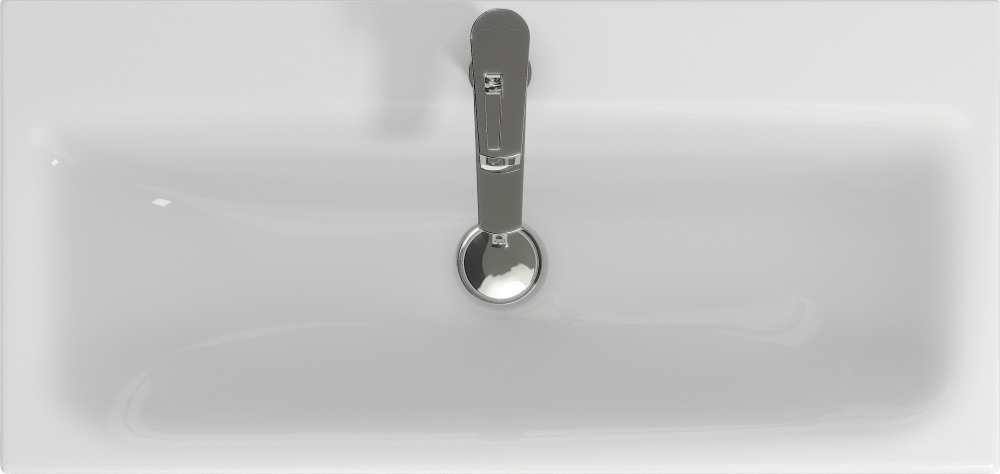 Прямоугольная мебельная раковина MODUO SLIM с узким профилем, размером 80 см. Имеет отверстие под смеситель, а также отверстие перелива.