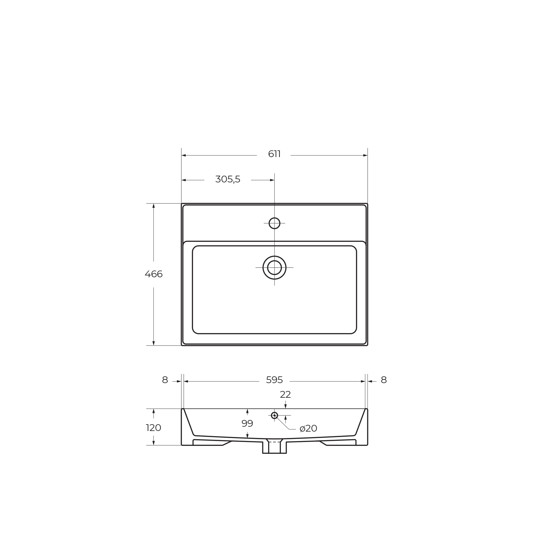 Раковина встраиваемая Cezares 60x46,5 (CZR-MIL-60-LVB)