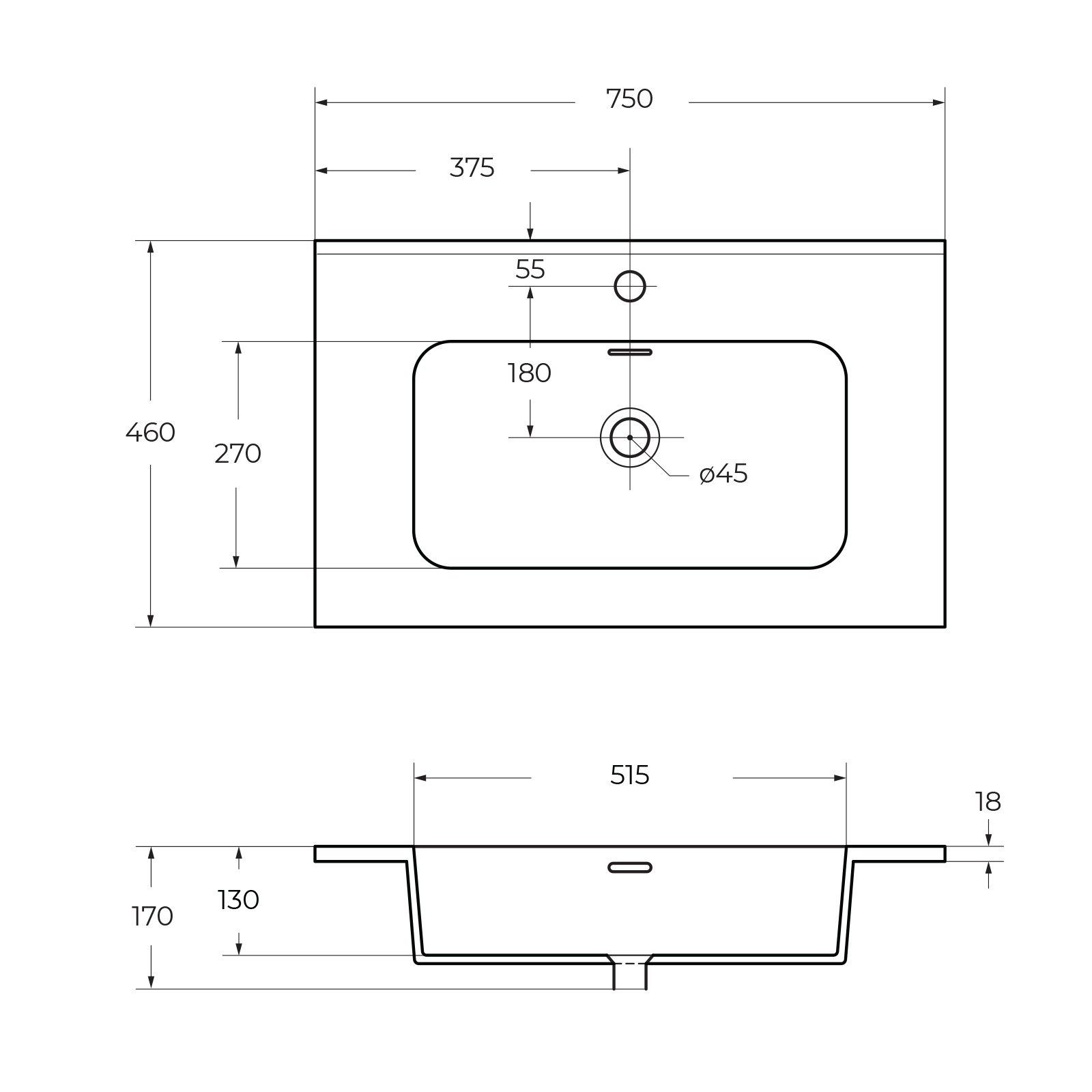 Раковина встраиваемая Cezares Bianco 75x46x19 (50201)