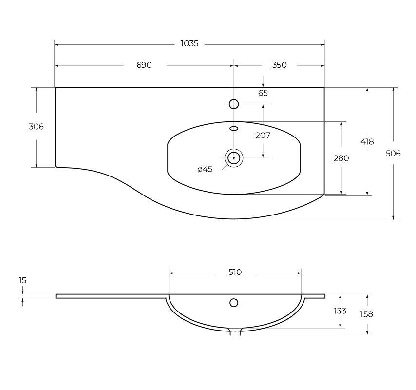 Раковина встраиваемая Cezares правосторонняя Extra Bianco 104x53 (82408)
