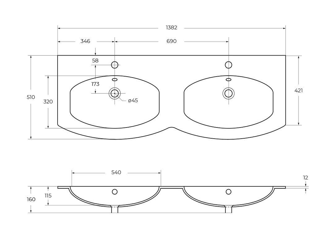 Раковина встраиваемая Cezares с двумя чашами Bianco 138x52x15 (50156)