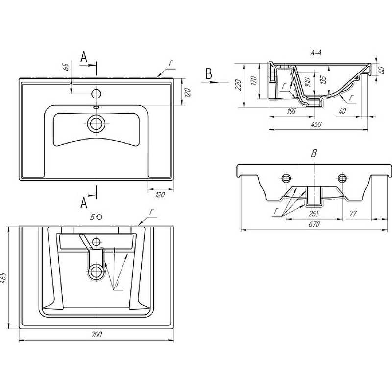 Раковина встраиваемая Dreja Grace 70