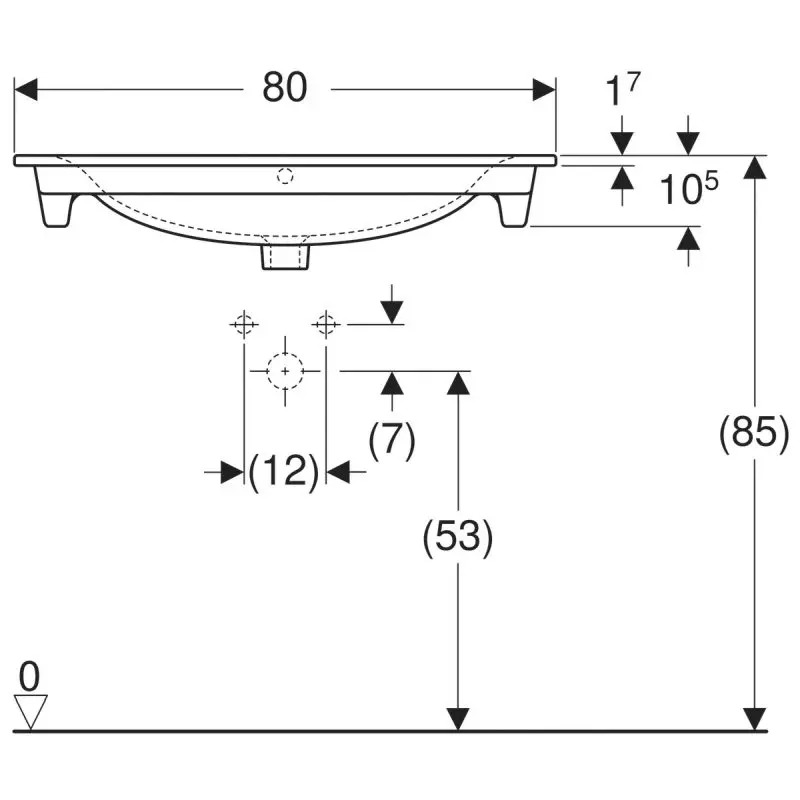 Раковина встраиваемая Geberit Renova Plan Slim 80х48 с отверстием под смеситель, с переливом, белая (122280000)