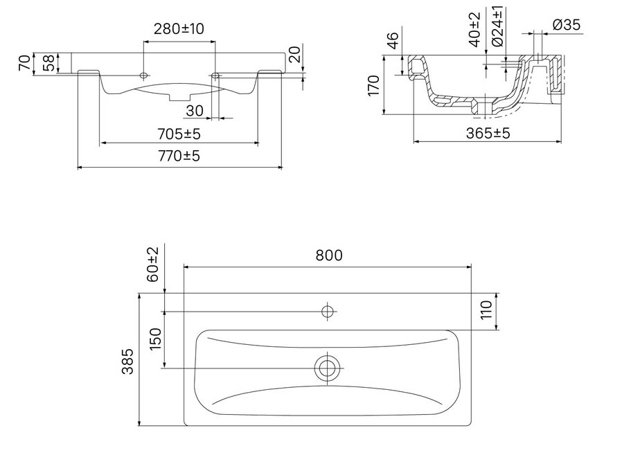 Умывальник мебельный. Материал: фарфор. Ширина: 800 мм. С отверстием под смеситель. Упаковка: пленка, пенопластовые уголки.