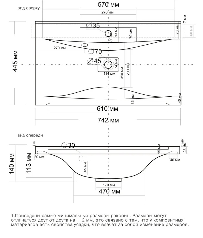 Раковина встраиваемая Мадера Milen 75