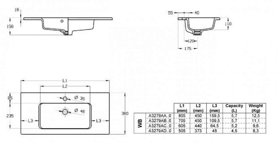Раковина встраиваемая Roca The Gap 60x38 белая (7.3279.A.C00.0)