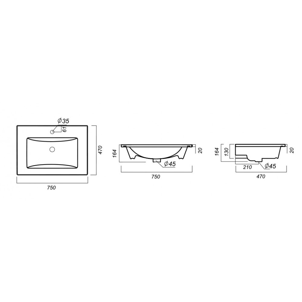 Состав ставки: раковина с переливом